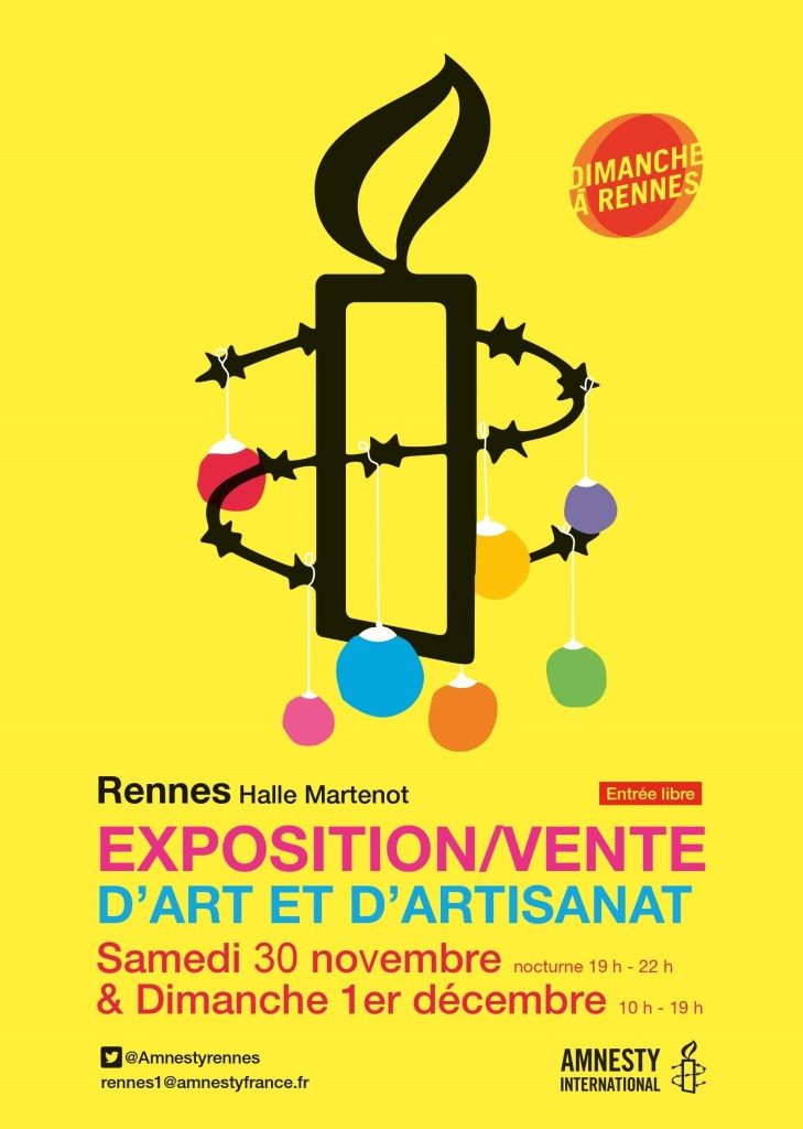 Vous pourrez également me retrouver à l’exposition d’art et d’artisanat les samedi 30 novembre et dimanche 1er décembre à Rennes pour des déambulations joyeuses au profit d’Amnesty International.